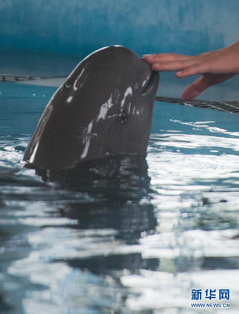 7月5日,中科院水生所白鱀豚館飼養(yǎng)員對長江江豚進行訓(xùn)練。新華社記者肖藝九攝