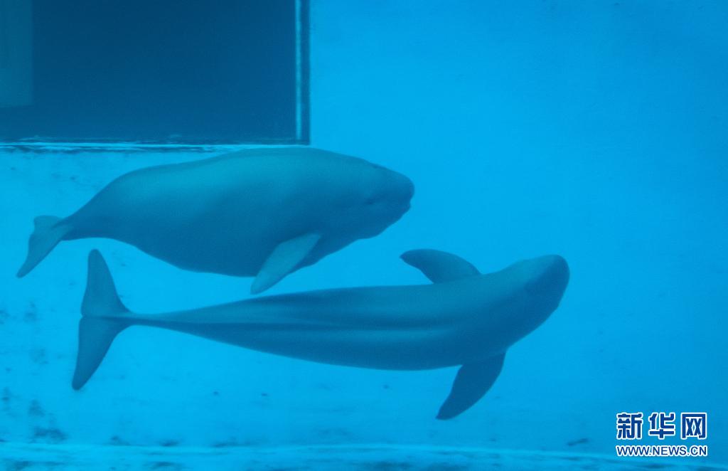 7月5日,江豚媽媽洋洋和小江豚YYC在水中游動。新華社記者肖藝九攝