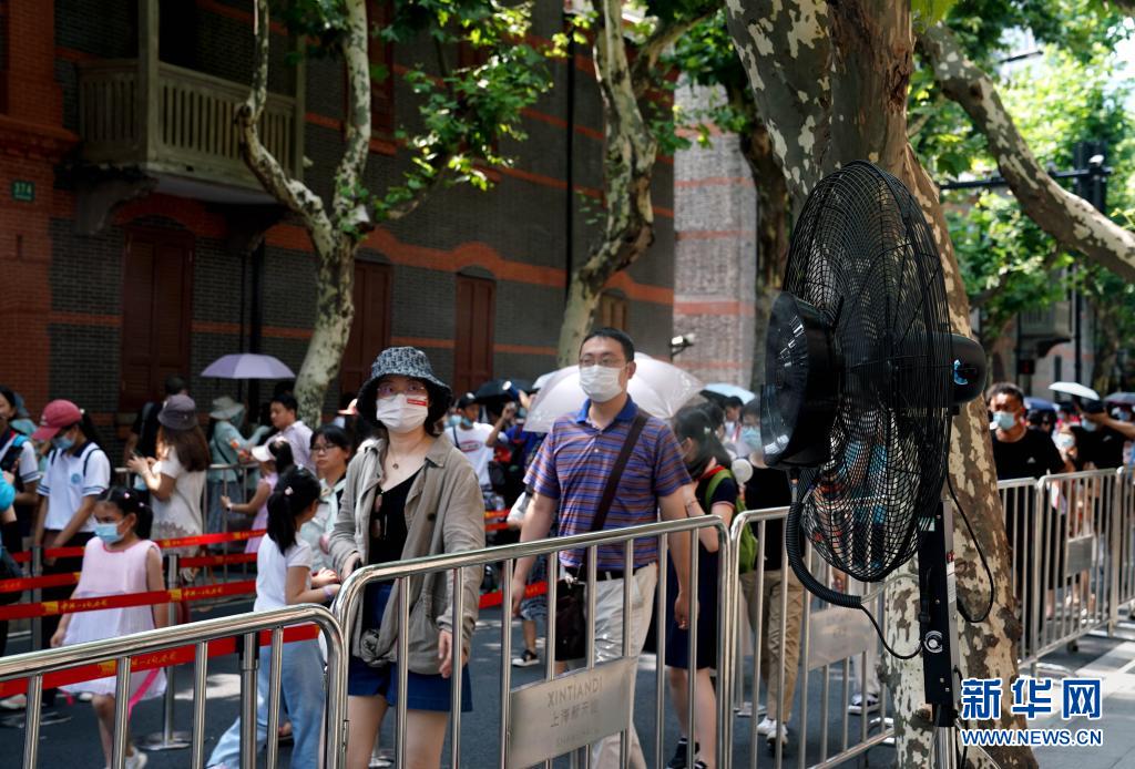 中共一大紀(jì)念館在觀眾排隊(duì)通道設(shè)置多個(gè)噴霧風(fēng)扇用于降溫(7月11日攝)。