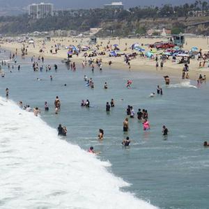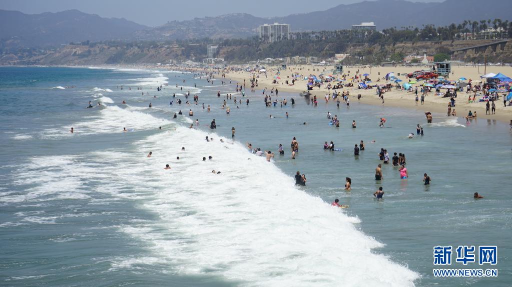 7月11日,人們?cè)诿绹?guó)加利福尼亞州圣莫尼卡海灘消暑。