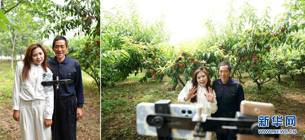 拼版照片:左圖為常阿娟和父親常乃民在山西省長治市潞州區(qū)東旺村果園里;右圖為常阿娟和父親常乃民通過網(wǎng)絡(luò)直播介紹自家種的水果(7月7日攝)。今年28歲的常阿娟原來在一家會(huì)計(jì)師事務(wù)所工作,2019年返鄉(xiāng)和父母一起打理果園。近兩年,常阿娟抓住網(wǎng)絡(luò)直播的熱潮,把鏡頭聚焦田間地頭,澆水、施肥、剪枝現(xiàn)場(chǎng)都成了她的“直播間”。借助網(wǎng)絡(luò)的力量,常阿娟家的產(chǎn)品不愁銷路,找她代售農(nóng)產(chǎn)品的村民也越來越多。