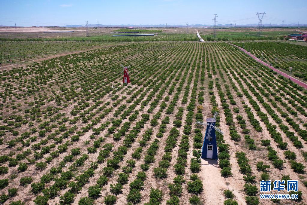 這是寧夏同心縣圣峰休閑生態(tài)觀光園內(nèi)的玫瑰觀光區(qū)(6月22日攝,無人機照片)。新華社記者 楊植森 攝