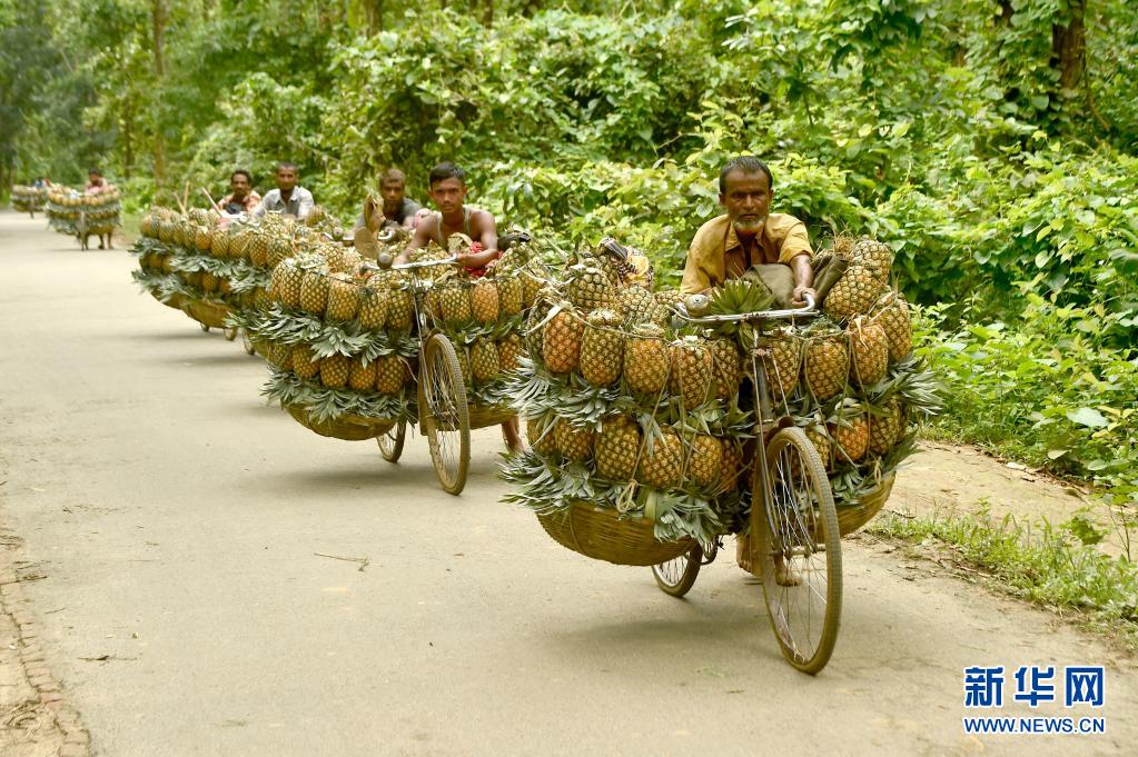 7月25日,農(nóng)民在孟加拉國坦蓋爾運輸收獲的菠蘿。