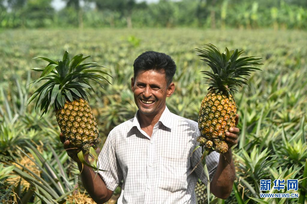 7月25日,一名男子在孟加拉國(guó)坦蓋爾展示收獲的菠蘿。