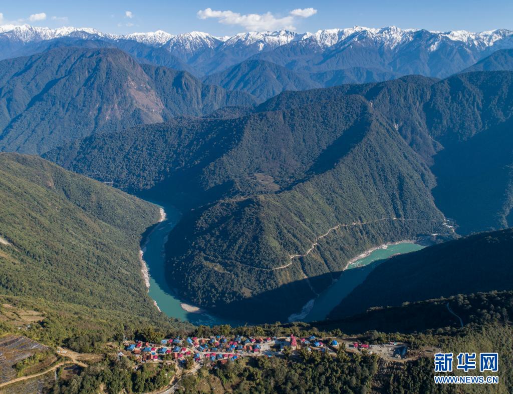 這是2月9日拍攝的位于雅魯藏布江邊的林芝市墨脫縣德興鄉(xiāng)巴登則村(無人機照片)。