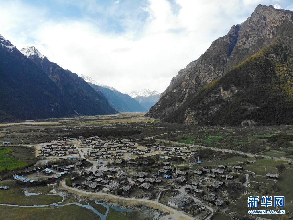 這是4月30日拍攝的林芝市工布江達(dá)縣境內(nèi)的古村落錯(cuò)高村(無人機(jī)照片)。