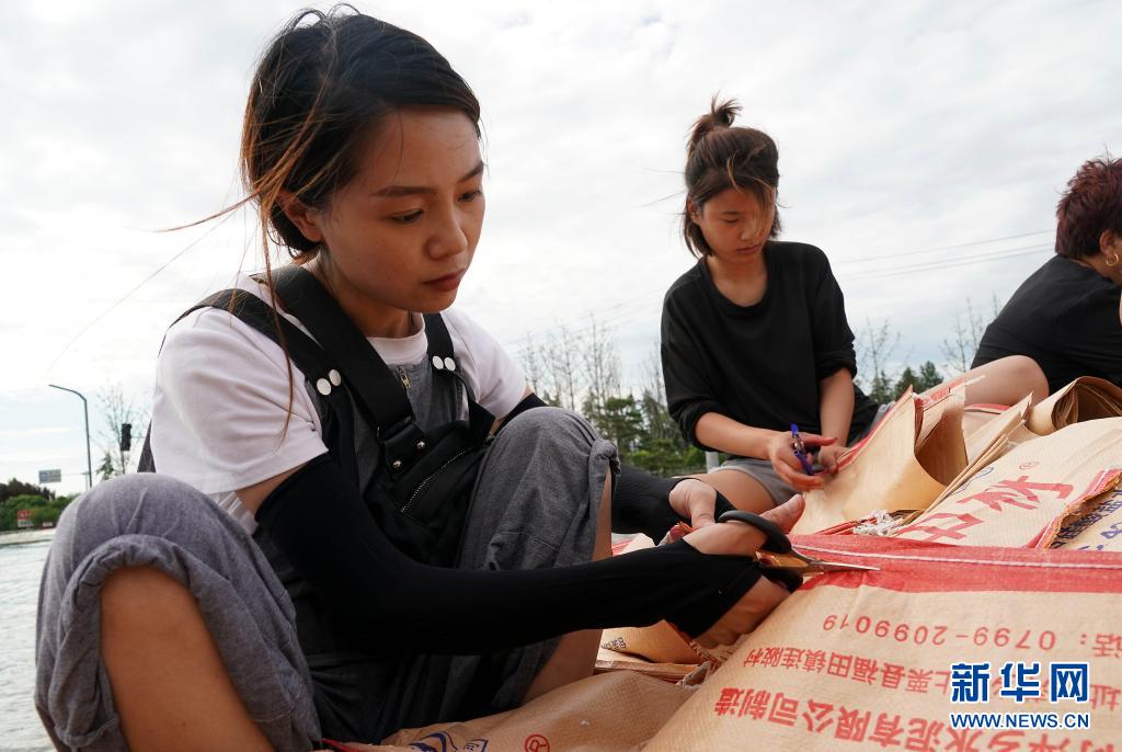 當(dāng)日,在河南省鶴壁市??h傅莊堤上,不少群眾自發(fā)前來和救援人員一起裝沙袋、運(yùn)沙袋,共筑堤壩。受持續(xù)強(qiáng)降雨影響,??h防汛形勢(shì)嚴(yán)峻,傅莊堤主要為??h縣城及26個(gè)村莊提供保護(hù)。新華社記者 李安 攝
