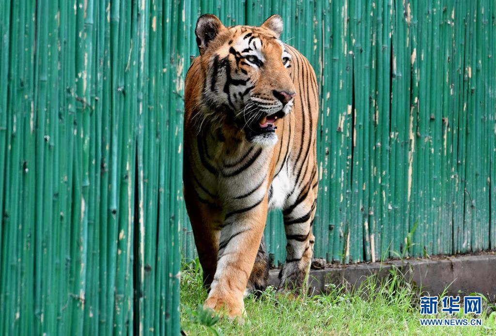 這是8月1日在印度新德里動(dòng)物園拍攝的孟加拉虎。