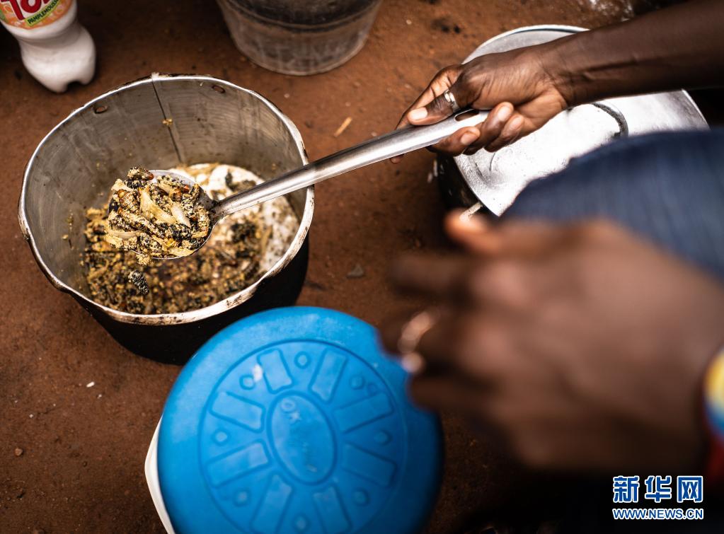 對(duì)于生活在糧食匱乏狀況下的居民,蟲子不僅意味著食物可以果腹,也是財(cái)富的來源。在雨季,來自首都班吉的經(jīng)銷商每天都騎著摩托車來到當(dāng)?shù)?,收購?dāng)?shù)鼐用褡淼拿x,然后賣到首都消費(fèi)者手里。