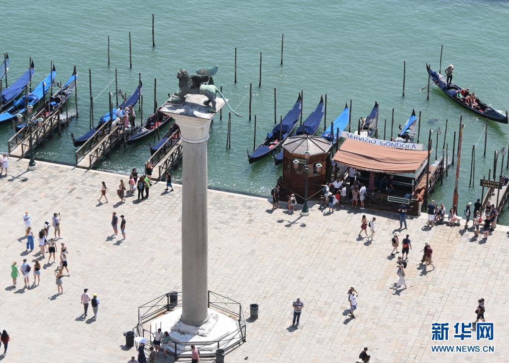 8月3日,在意大利威尼斯,“貢多拉”船??吭诎哆叀?/p>