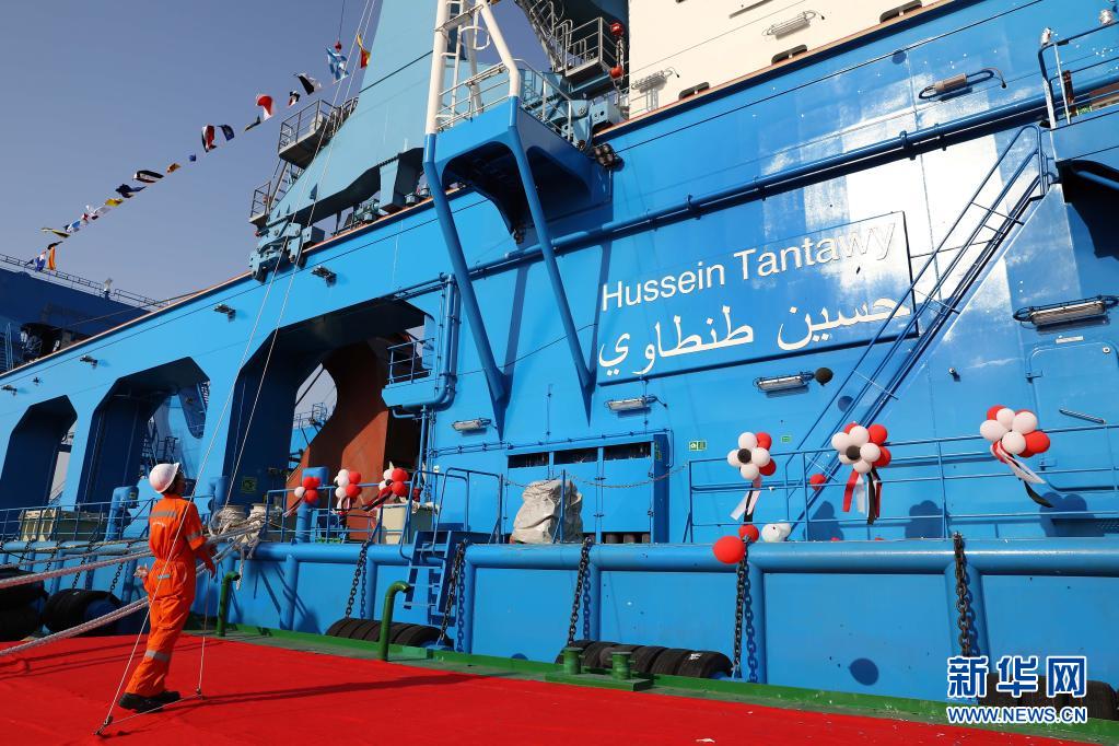 當(dāng)日,埃及蘇伊士運(yùn)河管理局在伊斯梅利亞舉行儀式,迎接最新購入的“侯賽因·坦塔維”號大型絞吸式挖泥船。
