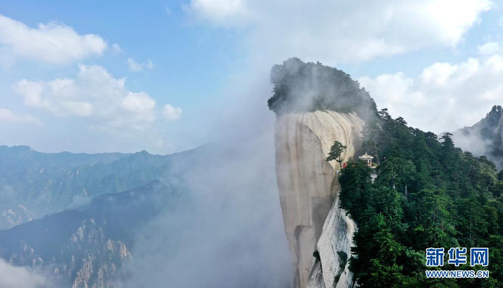 8月14日,云霧中的西岳華山風光(無人機照片)。
