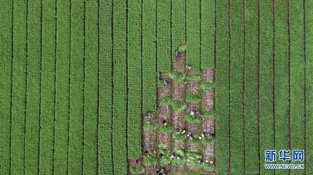 8月13日,在四川省阿壩藏族羌族自治州紅原縣刷經(jīng)寺鎮(zhèn)加當村,當?shù)厝罕娫谑崭罡咴n筍(無人機照片)。