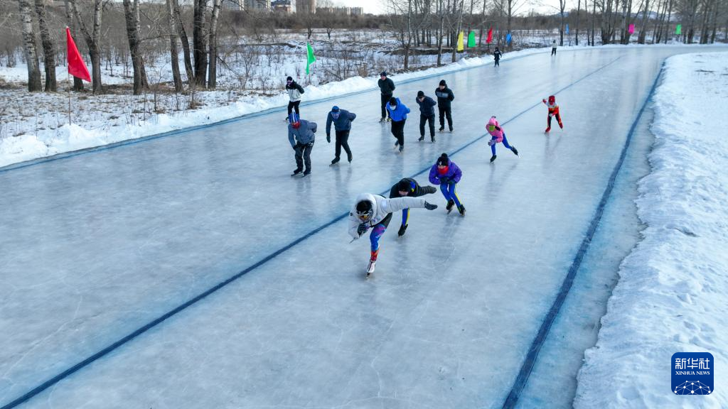 冬日时节,内蒙古自治区呼伦贝尔扎兰屯市市民走出家门,享受运动带来的快乐。