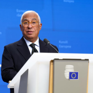 1月23日凌晨,在比利时布鲁塞尔,欧洲理事会主席科斯塔出席欧盟紧急峰会后的新闻发布会。