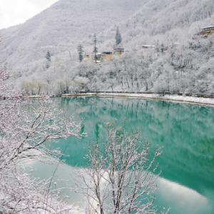 临近春分节气,甘肃省陇南市宕昌县出现降雪,春雪将官鹅沟景区装扮得银装素裹,白雪覆盖下的树木、湖泊和村庄共同构成一幅美丽画卷。