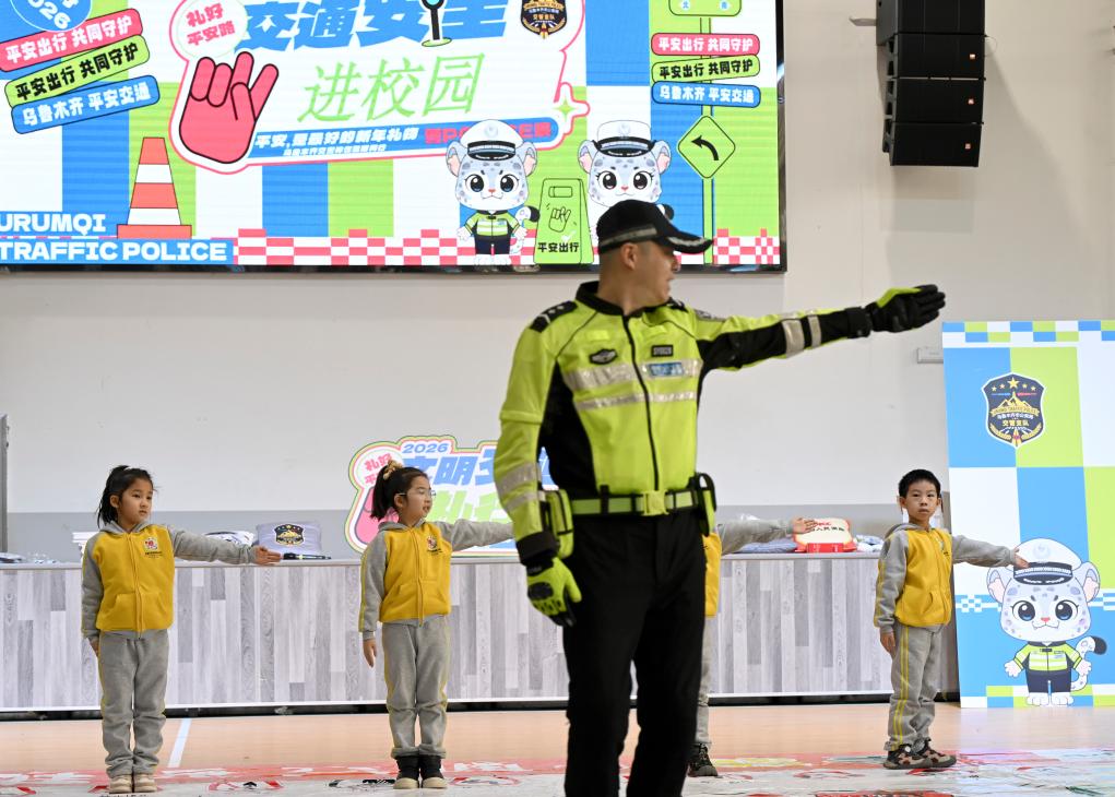 寒假将至,乌鲁木齐市公安局交通管理支队走进校园,开展“交通安全最后一课”主题宣传活动,通过游戏互动方式,寓教于乐,提高师生们交通安全意识。