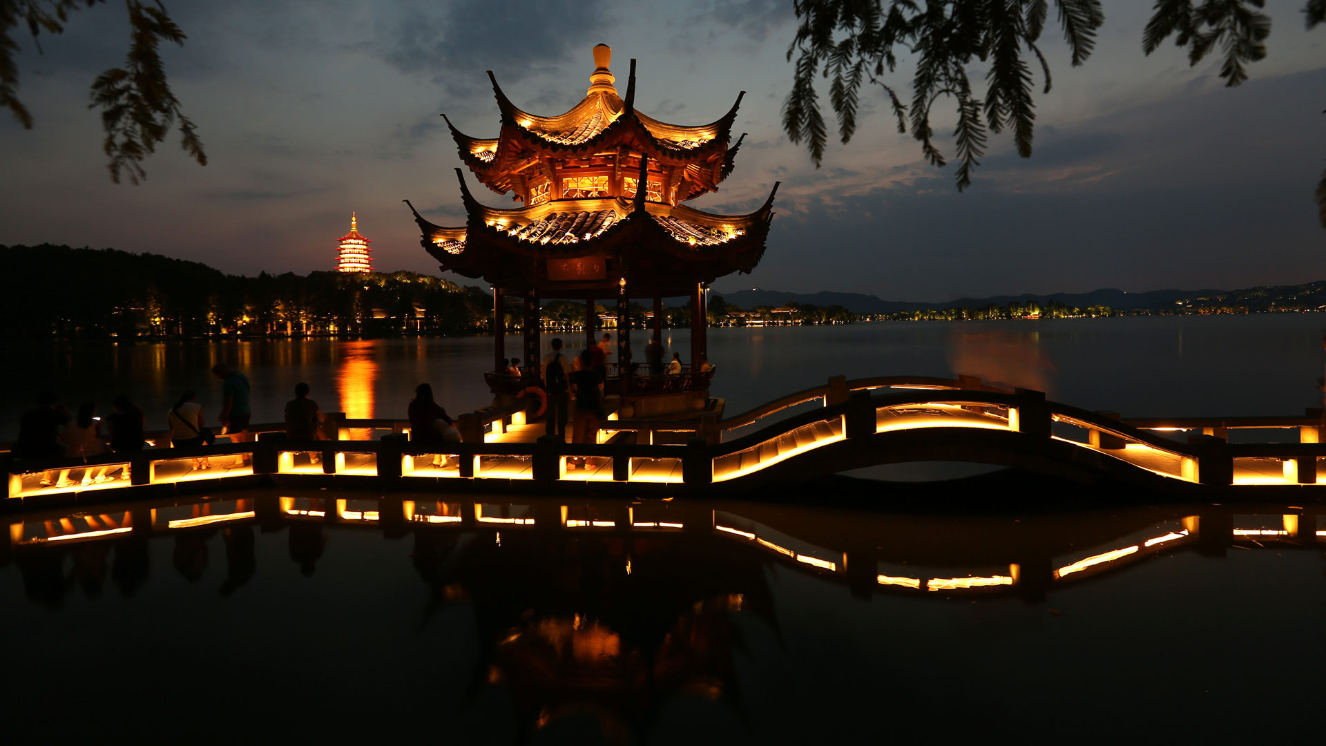 杭州西湖夜景(8月31日攝)。臨近G20杭州峰會(huì),杭州夜色柔美,燈光璀璨。9月4日至5日,二十國集團(tuán)(G20)領(lǐng)導(dǎo)人第十一次峰會(huì)將在浙江杭州舉行。 新華社記者殷剛攝