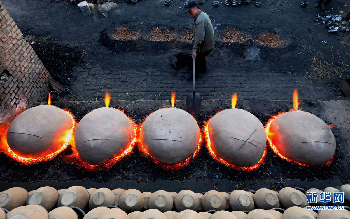 1月13日,在河北張家口蔚縣南留莊鎮(zhèn)白河?xùn)|村,王啟杰在青砂器燒制爐前工作。65歲的王啟杰是白河?xùn)|村一帶青砂器作坊“掌門人”、蔚州青砂器王氏家族的第四代傳承人,自幼跟父親學(xué)習(xí)青砂器制作,堅(jiān)持用傳統(tǒng)手藝燒制青砂器至今。河北省非物質(zhì)文化遺產(chǎn)項(xiàng)目——蔚縣青砂器是當(dāng)?shù)貍鹘y(tǒng)民間手工藝器皿,歷史悠久,俗稱砂鍋、砂壺、砂吊等,是熬中草藥、燒水、做飯、煮肉、熱酒的上好器皿。河北張家口蔚縣南留莊鎮(zhèn)白河?xùn)|村一帶是蔚縣青砂器的發(fā)源地。當(dāng)?shù)厣缴嫌胸S富的天然瓷土,其土質(zhì)有黏性,細(xì)膩、柔軟、可塑性強(qiáng),俗稱“矸子土”,是制作青砂器的天然資源。從碾碎“矸子土”到拉坯,再到燒制出成品,一件蔚縣青砂器的制作,需要大量繁瑣的工序。在燒制過程中,查看燒制的火候又稱“看火”,是個重要環(huán)節(jié)——“看火”是否準(zhǔn)確,直接決定青砂器燒制質(zhì)量的好壞,這個“絕活”一般是由燒制青砂器的傳承人一輩一輩傳下來的。新華社記者 楊世堯 攝