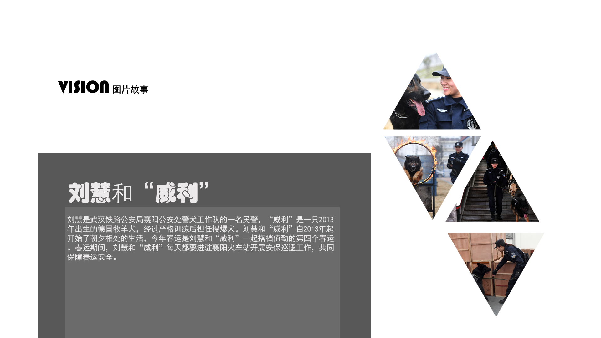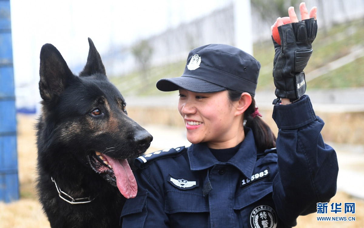 2月5日,劉慧和“威利”在警犬基地玩耍。劉慧是武漢鐵路公安局襄陽公安處警犬工作隊的一名民警,“威利”是一只2013年出生的德國牧羊犬,經(jīng)過嚴格訓練后擔任搜爆犬。劉慧和“威利”自2013年起開始了朝夕相處的生活,今年春運是劉慧和“威利”一起搭檔值勤的第四個春運。春運期間,劉慧和“威利”每天都要進駐襄陽火車站開展安保巡邏工作,共同保障春運安全。 新華社記者 程敏 攝