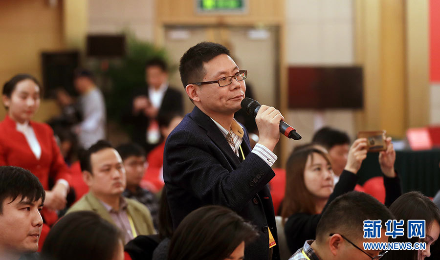 ??? 10月19日,十九大新聞中心舉辦集體采訪,邀請政法戰(zhàn)線代表談全面推進(jìn)依法治國。圖為黨建雜志、黨建網(wǎng)記者提問。新華網(wǎng) 郝廣鵬攝