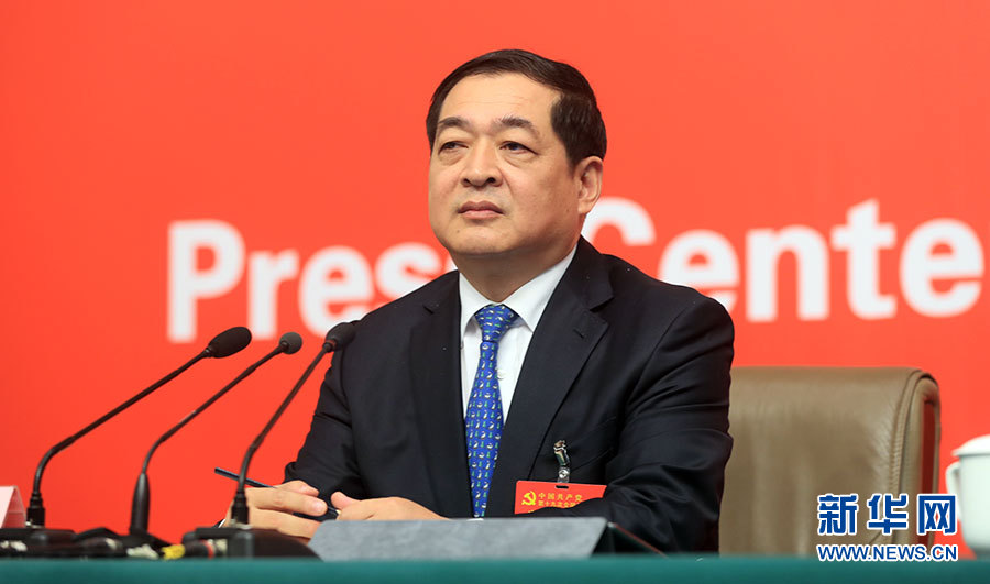 ??? 10月19日,十九大新聞中心舉辦集體采訪,邀請(qǐng)工信和通訊領(lǐng)域代表談走新型工業(yè)化道路。圖為山東省經(jīng)濟(jì)和信息化委員會(huì)黨組書(shū)記、主任錢煥濤。新華網(wǎng) 郝廣鵬攝