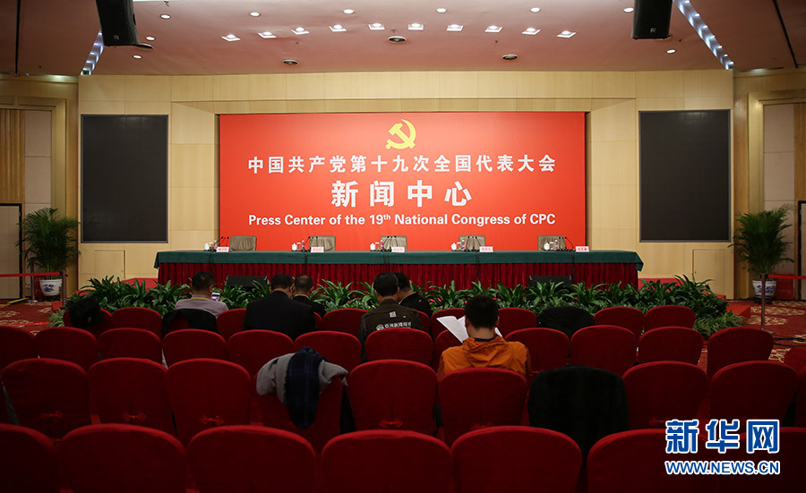 ??? 10月20日,十九大新聞中心舉行記者會,邀請中宣部、中央文明辦、文化部、新聞出版廣電總局相關(guān)負責人介紹加強思想道德和文化建設(shè)情況,并回答記者提問。圖為記者會現(xiàn)場。新華網(wǎng) 郝廣鵬 攝