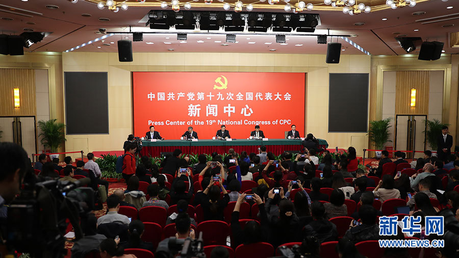 ??? 10月20日,十九大新聞中心舉行記者會,邀請中宣部、中央文明辦、文化部、新聞出版廣電總局相關(guān)負(fù)責(zé)人介紹加強(qiáng)思想道德和文化建設(shè)情況,并回答記者提問。圖為記者會現(xiàn)場。新華網(wǎng) 郝廣鵬 攝