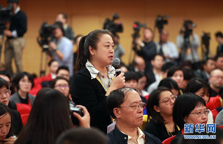 ??? 10月20日,十九大新聞中心舉行記者會,邀請中宣部、中央文明辦、文化部、新聞出版廣電總局相關(guān)負(fù)責(zé)人介紹加強(qiáng)思想道德和文化建設(shè)情況,并回答記者提問。圖為中央人民廣播電臺記者提問。新華網(wǎng) 郝廣鵬 攝