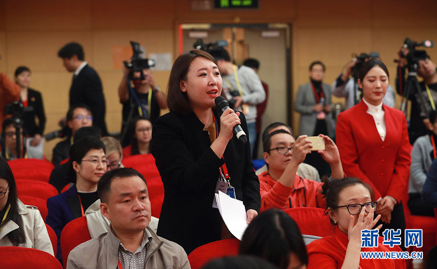 ??? 10月20日,十九大新聞中心舉辦集體采訪活動,主題為“文化發(fā)展開創(chuàng)新局面”。圖為中國國際廣播電臺記者提問。新華網 陳杰攝