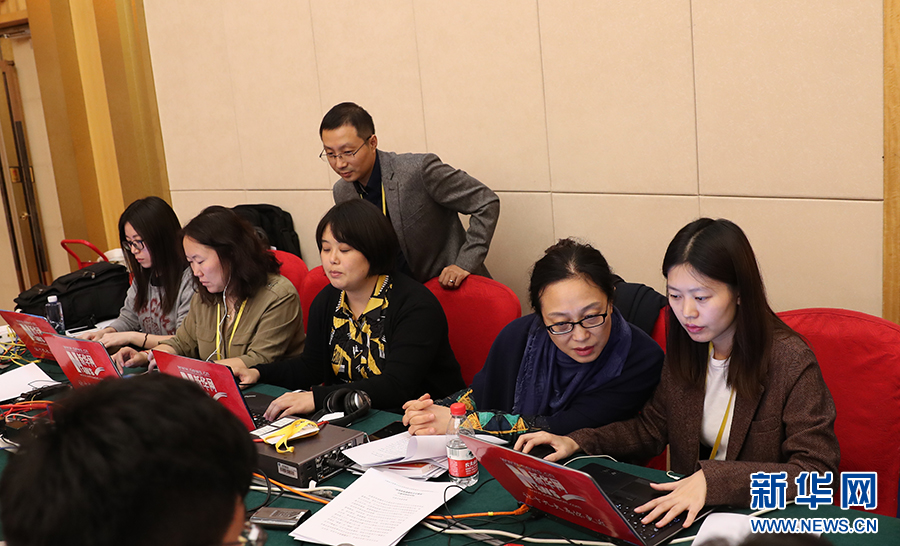 ??? 10月20日,十九大新聞中心舉辦集體采訪活動(dòng),主題為“文化發(fā)展開創(chuàng)新局面”。圖為新華網(wǎng)在現(xiàn)場(chǎng)直播。新華網(wǎng) 陳杰攝