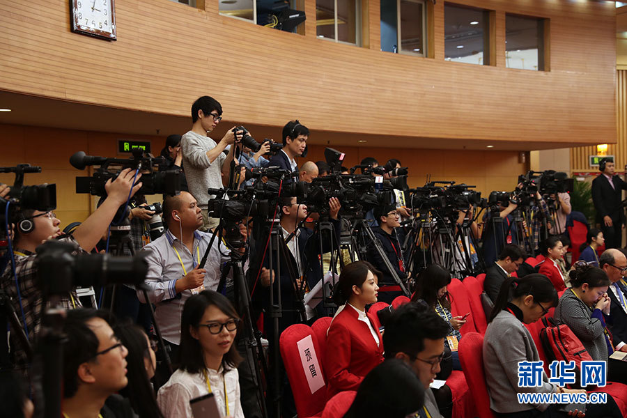 ??? 10月20日,十九大新聞中心舉辦集體采訪活動(dòng),主題為“文化發(fā)展開(kāi)創(chuàng)新局面”。圖為現(xiàn)場(chǎng)記者。新華網(wǎng) 陳杰攝