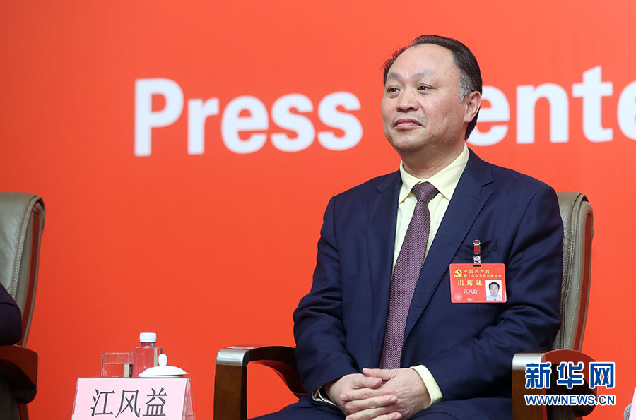 ??? 10月20日,十九大新聞中心舉辦集體采訪活動,主題為“實施創(chuàng)新驅(qū)動發(fā)展戰(zhàn)略”。圖為南昌大學(xué)黨委常委、副校長江風(fēng)益。新華網(wǎng) 郝廣鵬攝
