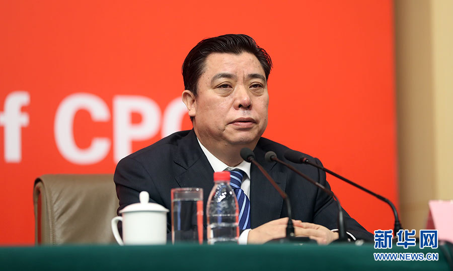 ??? 10月21日,十九大新聞中心舉辦記者招待會(huì),邀請(qǐng)中共中央統(tǒng)戰(zhàn)部常務(wù)副部長(zhǎng)張裔炯、副部長(zhǎng)冉萬(wàn)祥,中共中央對(duì)外聯(lián)絡(luò)部副部長(zhǎng)郭業(yè)洲介紹黨的統(tǒng)一戰(zhàn)線工作和黨的對(duì)外交往情況,并回答記者提問(wèn)。圖為中共中央統(tǒng)戰(zhàn)部副部長(zhǎng)冉萬(wàn)祥。新華網(wǎng) 郝廣鵬攝