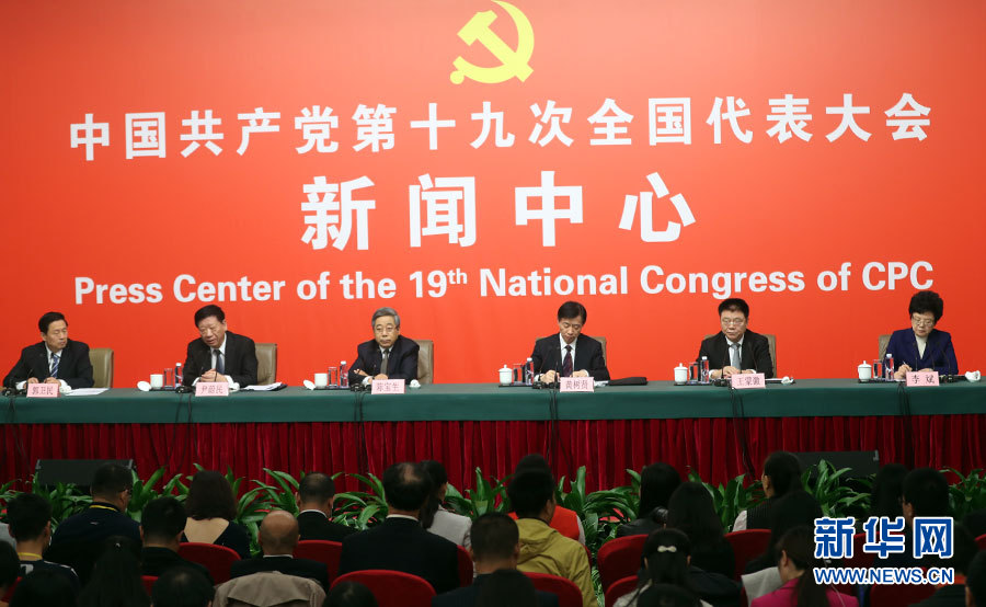 10月22日,十九大新聞中心舉辦記者招待會(huì),邀請(qǐng)教育部黨組書(shū)記、部長(zhǎng)陳寶生,民政部黨組書(shū)記、部長(zhǎng)黃樹(shù)賢,人力資源社會(huì)保障部黨組書(shū)記、部長(zhǎng)尹蔚民,住房城鄉(xiāng)建設(shè)部黨組書(shū)記、部長(zhǎng)王蒙徽,國(guó)家衛(wèi)生計(jì)生委黨組書(shū)記、主任李斌介紹滿足人民新期待,保障改善民生有關(guān)情況,并回答記者提問(wèn)。圖為記者招待會(huì)現(xiàn)場(chǎng)。新華網(wǎng) 郝廣鵬攝