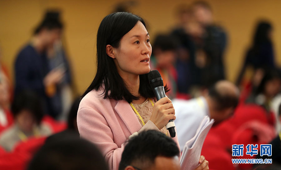 10月22日,十九大新聞中心在梅地亞中心二層新聞發(fā)布廳舉辦集體采訪活動(dòng),邀請(qǐng)教育領(lǐng)域代表談“教育綜合改革”。圖為中國婦女報(bào)記者提問。新華網(wǎng) 郝廣鵬攝