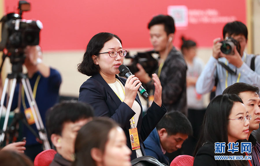 10月23日,十九大新聞中心舉辦集體采訪活動(dòng),主題為“打好生態(tài)環(huán)保攻堅(jiān)戰(zhàn)”。圖為今日中國雜志社記者提問。新華網(wǎng) 郝廣鵬攝