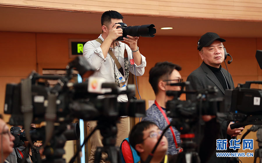 10月23日,十九大新聞中心舉辦集體采訪活動(dòng),主題為“打好生態(tài)環(huán)保攻堅(jiān)戰(zhàn)”。圖為現(xiàn)場(chǎng)記者。新華網(wǎng) 郝廣鵬攝