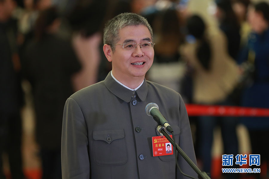 10月24日,人民大會堂舉辦“黨代表通道”第三場采訪活動。圖為胡偉武代表接受采訪。新華網(wǎng)記者 翟子赫 攝