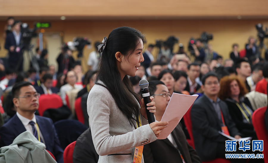 ? 10月26日上午10:00,中國共產(chǎn)黨第十九次全國代表大會(huì)新聞發(fā)言人在梅地亞賓館二層新聞發(fā)布廳召開專題新聞發(fā)布會(huì),請有關(guān)方面負(fù)責(zé)人解讀十九大報(bào)告,并回答記者關(guān)心的問題。圖為中央人民廣播電臺記者提問。新華網(wǎng) 王成云 攝