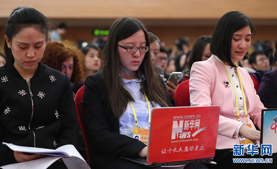 10月26日上午10:00,中國(guó)共產(chǎn)黨第十九次全國(guó)代表大會(huì)新聞發(fā)言人在梅地亞賓館二層新聞發(fā)布廳召開(kāi)專(zhuān)題新聞發(fā)布會(huì),請(qǐng)有關(guān)方面負(fù)責(zé)人解讀十九大報(bào)告,并回答記者關(guān)心的問(wèn)題。圖為現(xiàn)場(chǎng)媒體記者。新華網(wǎng)?翟子赫 攝