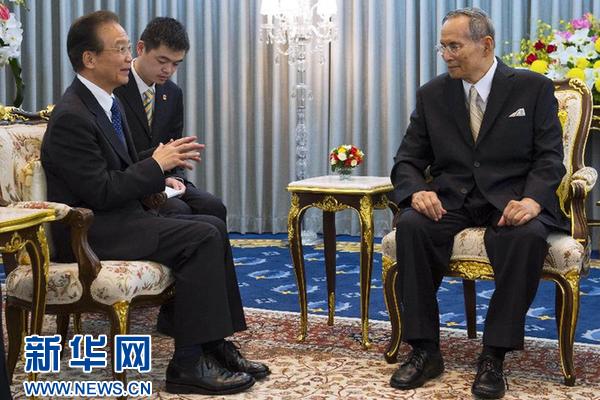 ??? 11月21日,國務(wù)院總理溫家寶在曼谷會見泰國國王普密蓬。新華社記者王曄攝