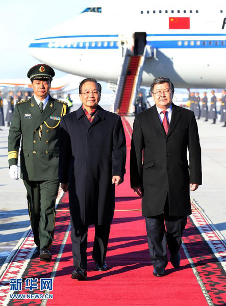 溫家寶抵達(dá)比什凱克出席上海合作組織成員國總理第十一次會議并對吉爾吉斯斯坦進(jìn)行正式訪問