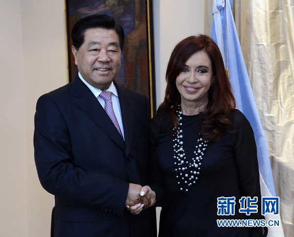 賈慶林會(huì)見(jiàn)阿根廷總統(tǒng)克里斯蒂娜