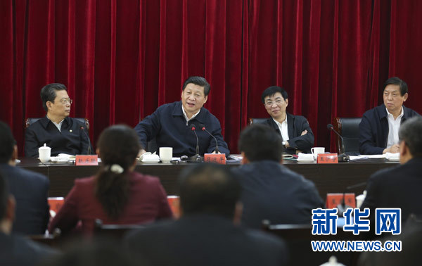 3月18日,習(xí)近平聽(tīng)取蘭考縣教育實(shí)踐活動(dòng)情況匯報(bào),并發(fā)表重要講話。新華社記者丁林?jǐn)z