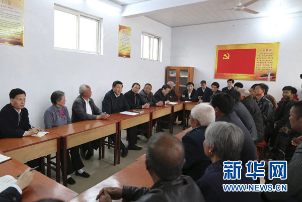 ??? 3月17日,習(xí)近平在東壩頭鄉(xiāng)張莊村村委會(huì)與干部群眾座談,聽(tīng)取意見(jiàn)和建議。新華社記者丁林?jǐn)z