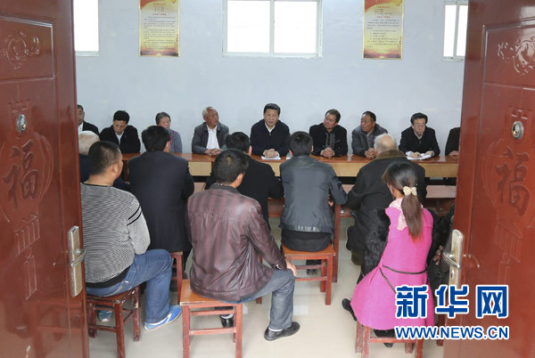 ??? 3月17日,習(xí)近平在東壩頭鄉(xiāng)張莊村村委會(huì)與干部群眾座談,聽(tīng)取意見(jiàn)和建議。 新華社記者李學(xué)仁攝