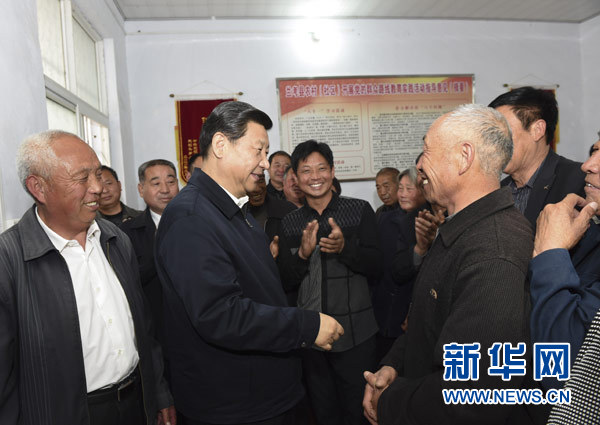 3月17日,習(xí)近平在東壩頭鄉(xiāng)張莊村村委會(huì)與干部群眾交流。新華社記者李學(xué)仁攝