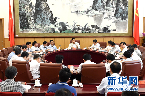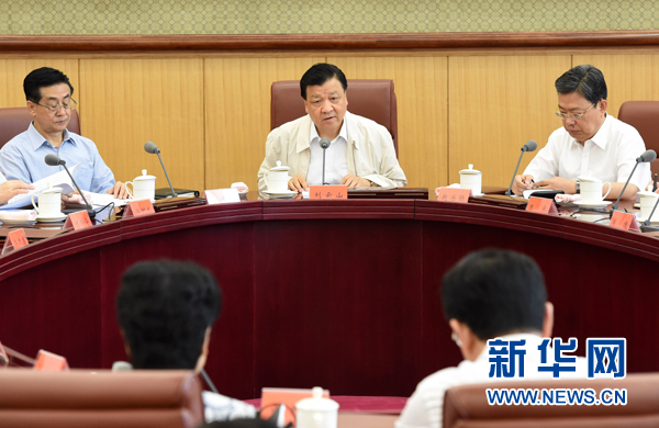 ??? 7月5日,中共中央政治局常委、中央黨的群眾路線教育實踐活動領(lǐng)導(dǎo)小組組長劉云山在北京主持召開中央黨的群眾路線教育實踐活動領(lǐng)導(dǎo)小組會議。新華社記者 劉建生 攝