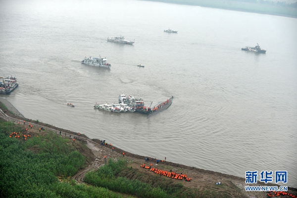6月2日,空中拍攝的長江客船翻沉搜救現(xiàn)場。 新華社發(fā)(葉海濤 攝)